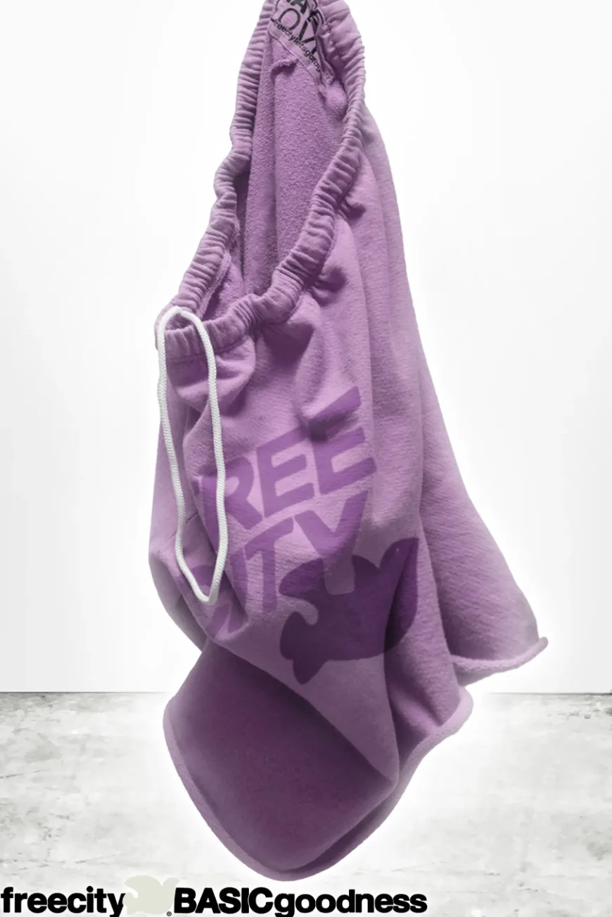 NEW Unisex FREECITY cutoffs with classic "FREECITY" print and "FREECITYDOVE", covered elastic waist, pull drawcord, and home/cut raw edge. Hand-sewn, washed, dyed, and hand-screen printed locally in Los Angeles, CA. 100% custom. 100% FREECITY!