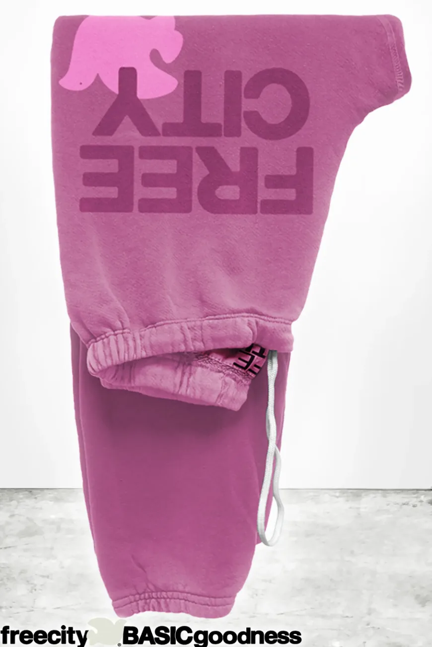 Unisex FLOW sweatpant with classic "FREECITY" print and "FREECITYDOVE," covered elastic waist and pull drawcord. Hand-sewn, washed, dyed, and hand-screen printed locally in Los Angeles, CA. 100% custom. 100% FREECITY!