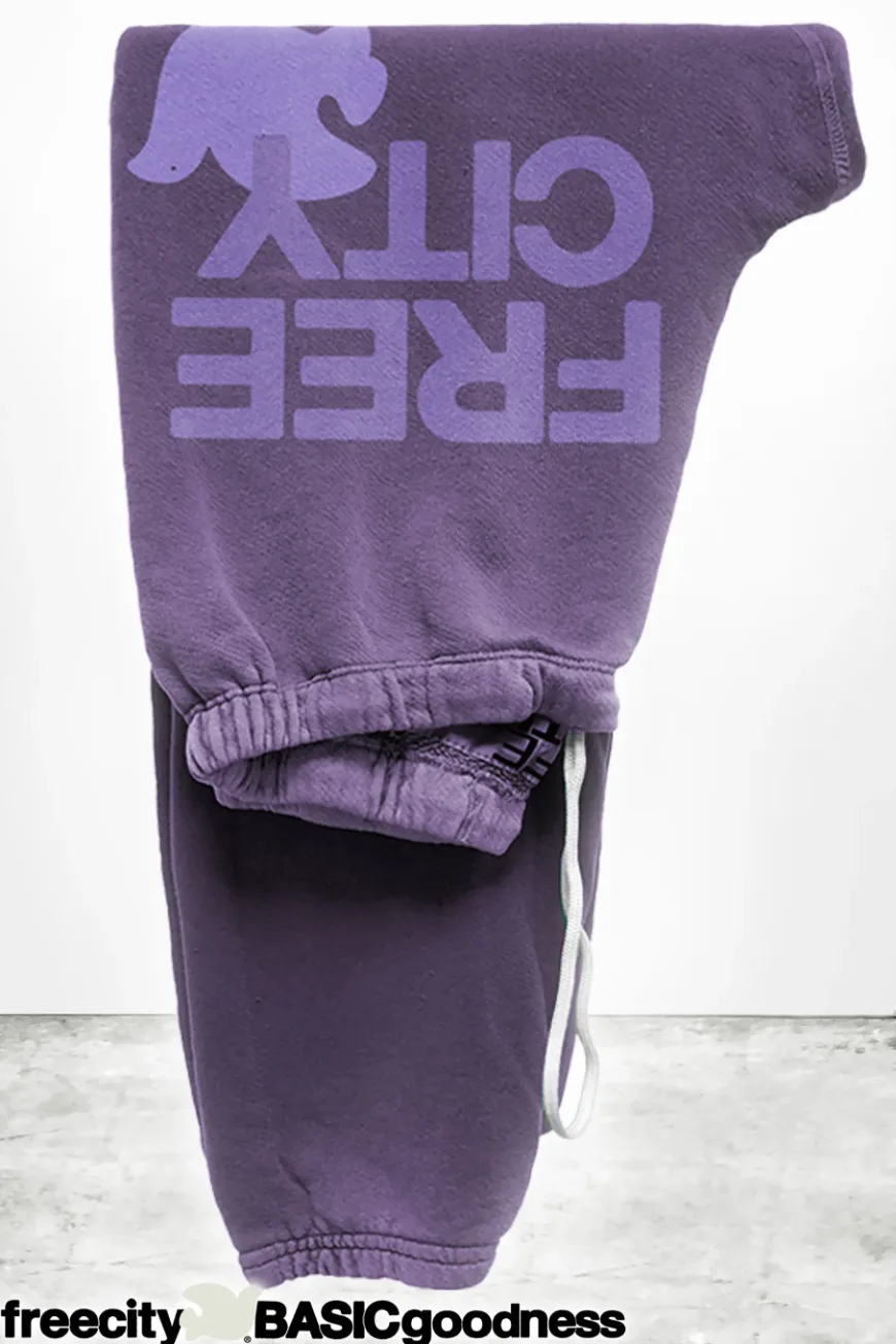 Unisex FLOW sweatpant with classic "FREECITY" print and "FREECITYDOVE," covered elastic waist and pull drawcord. Hand-sewn, washed, dyed, and hand-screen printed locally in Los Angeles, CA. 100% custom. 100% FREECITY!